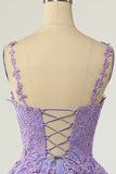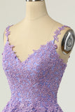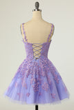 A Line Spaghetti Straps Purple Short Homecoming Dress