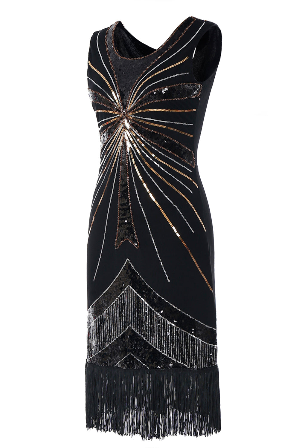 Black 1920s Sequins Fringe Flapper Dress