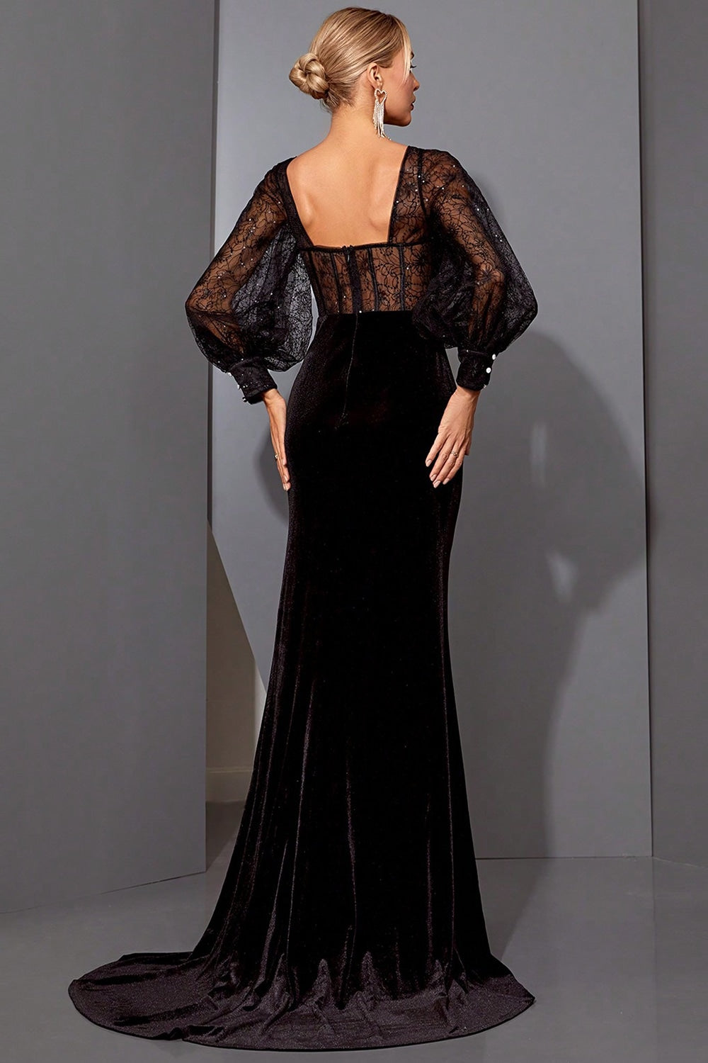 Black Lace Mermaid Corset Long Evening Dress with Slit