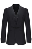 Black One Button Shawl Lapel 3 Piece Men's Suits