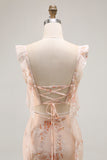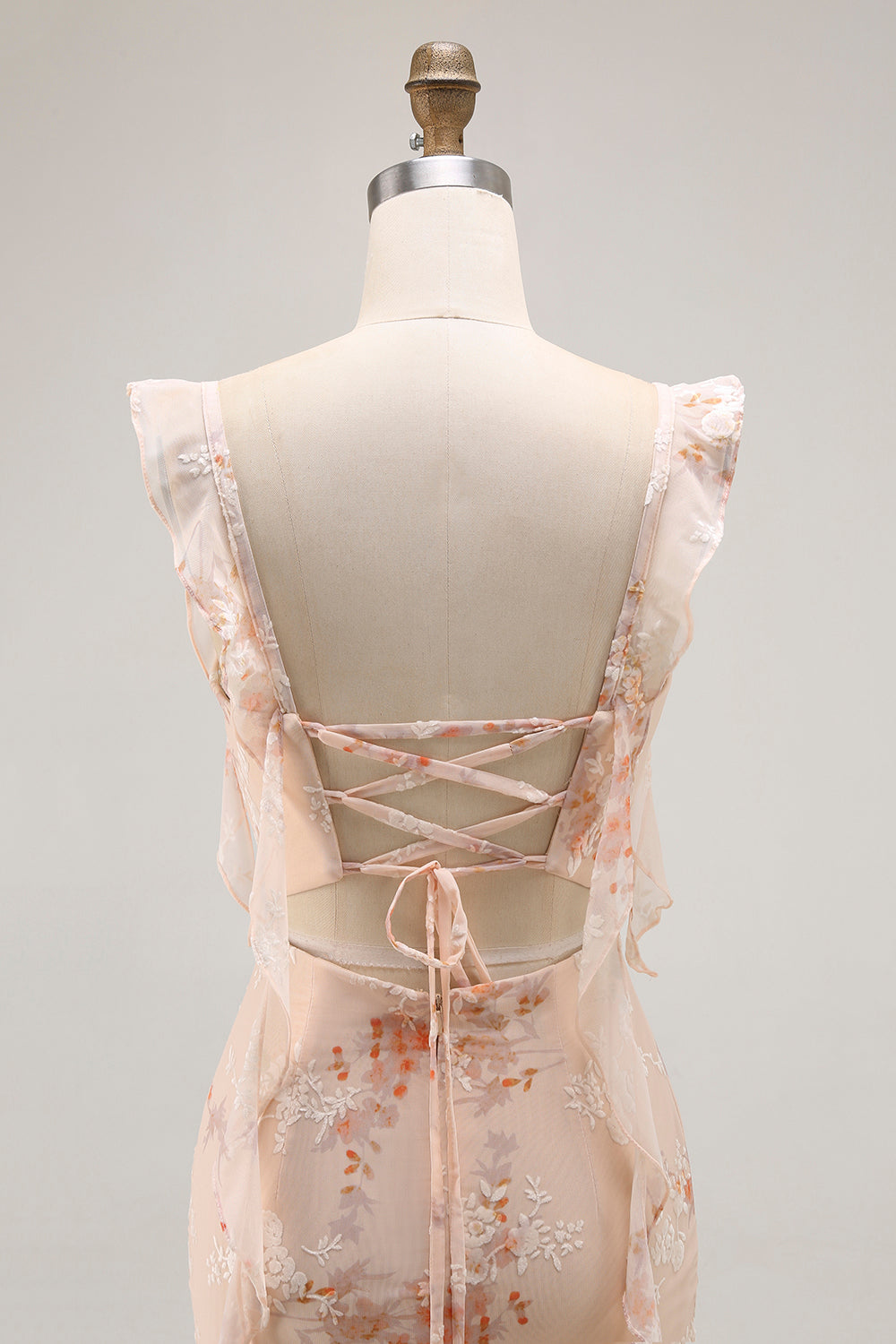 Champagne Floral Sheath Long Bridesmaid Dress With Slit