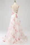 Ivory Flower Embroidered Long Corset Prom Dress with Slit