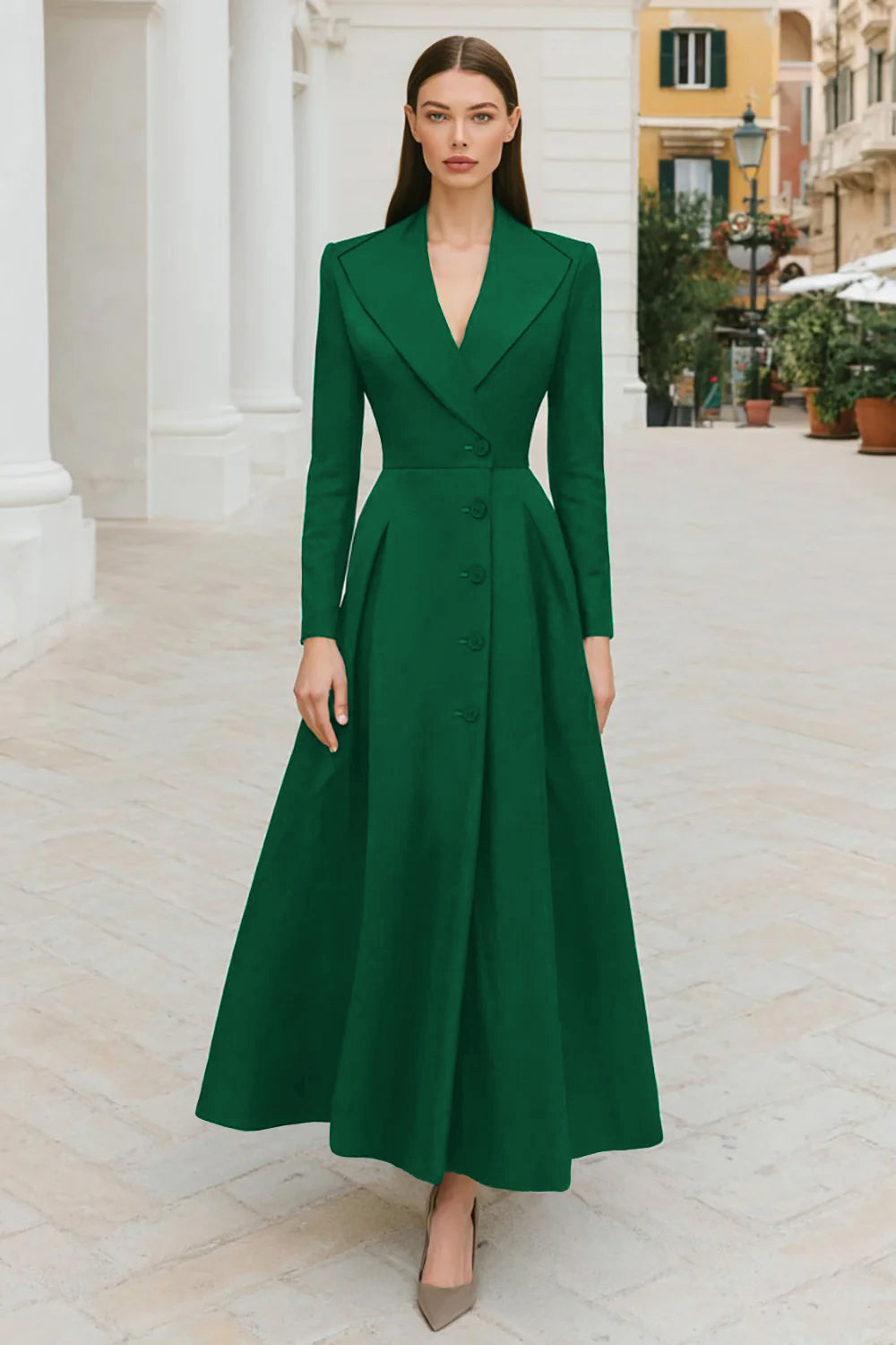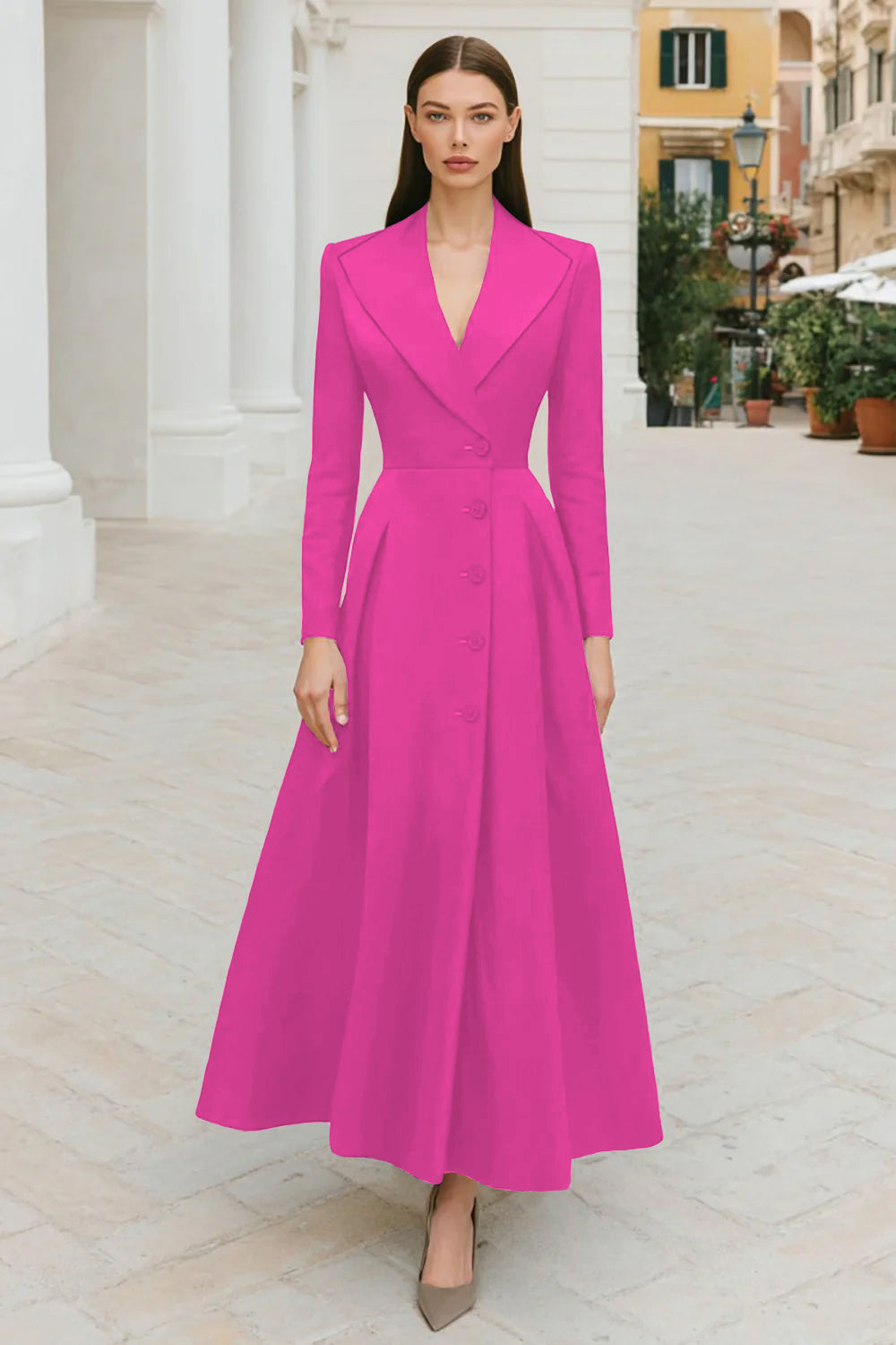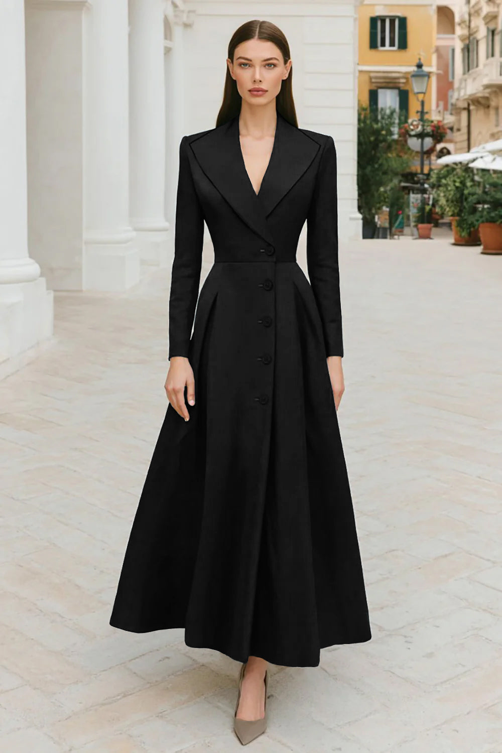 Navy Lapel Single-breasted A Line Work Dress
