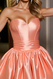 Orange Satin Strapless A Line Mini Homecoming Dress