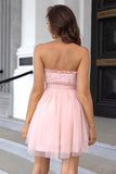 Pink Strapless A Line Tulle Short Homecoming Dress