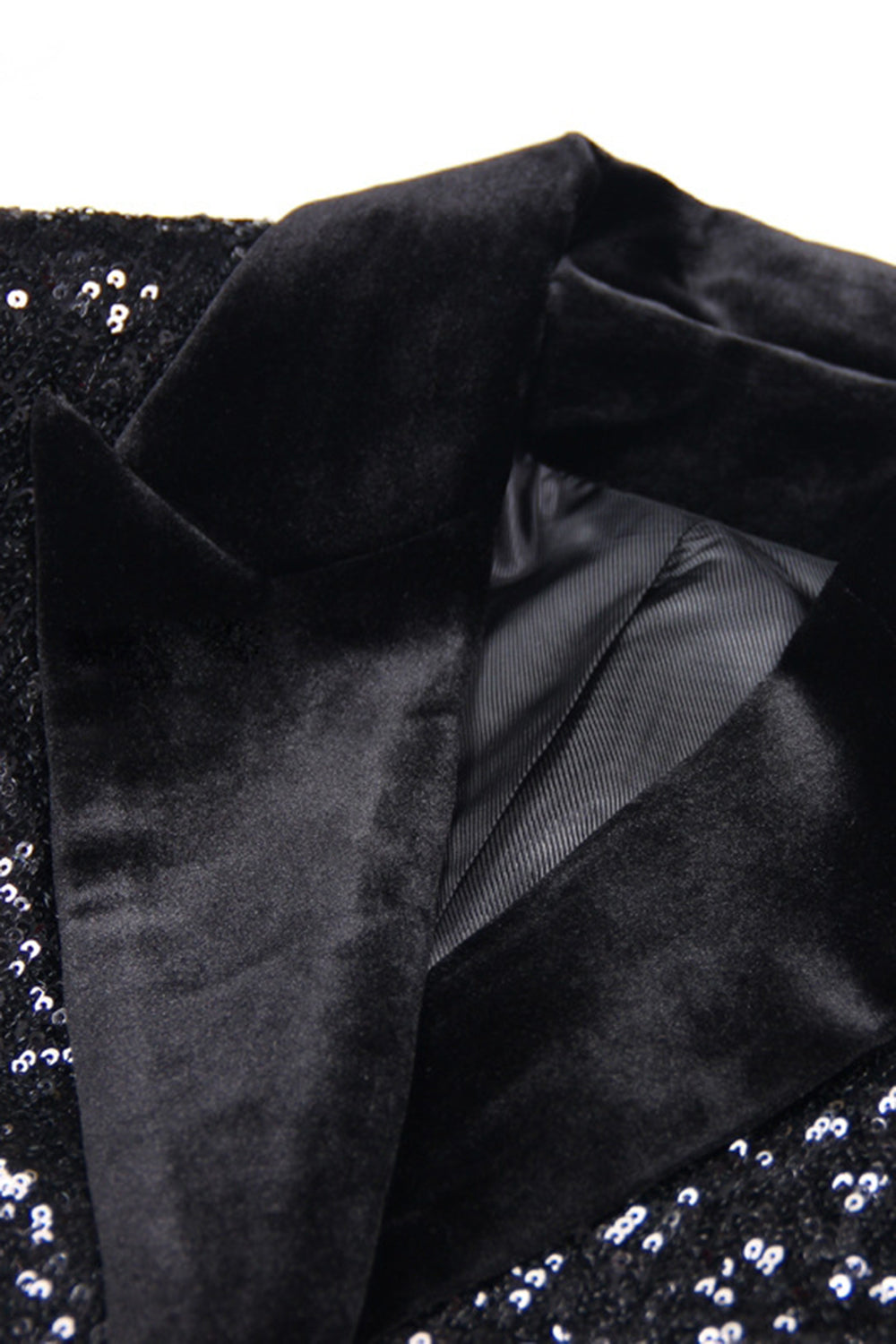 Sparkly Black Sequin Double Breasted Peak Lapel Women Blazer